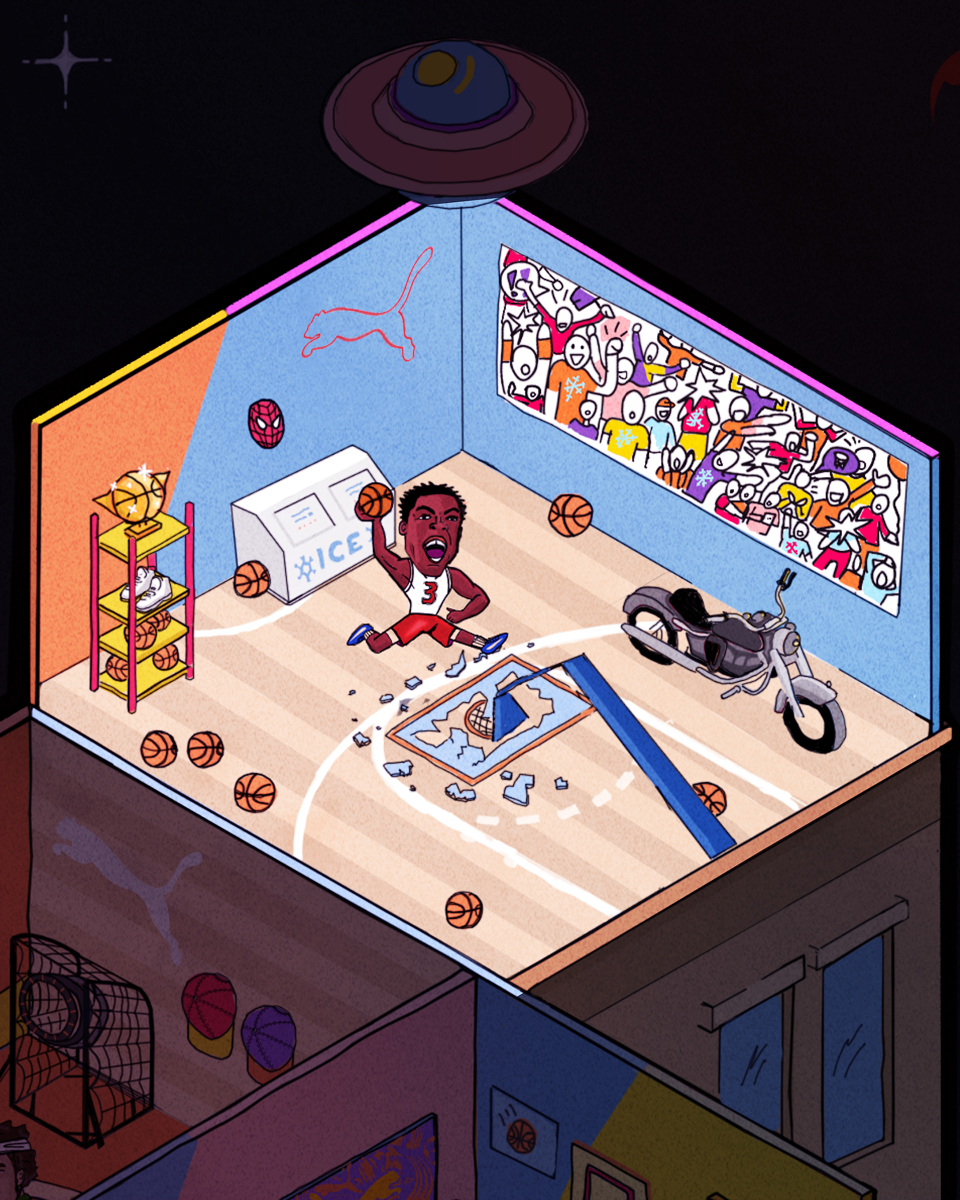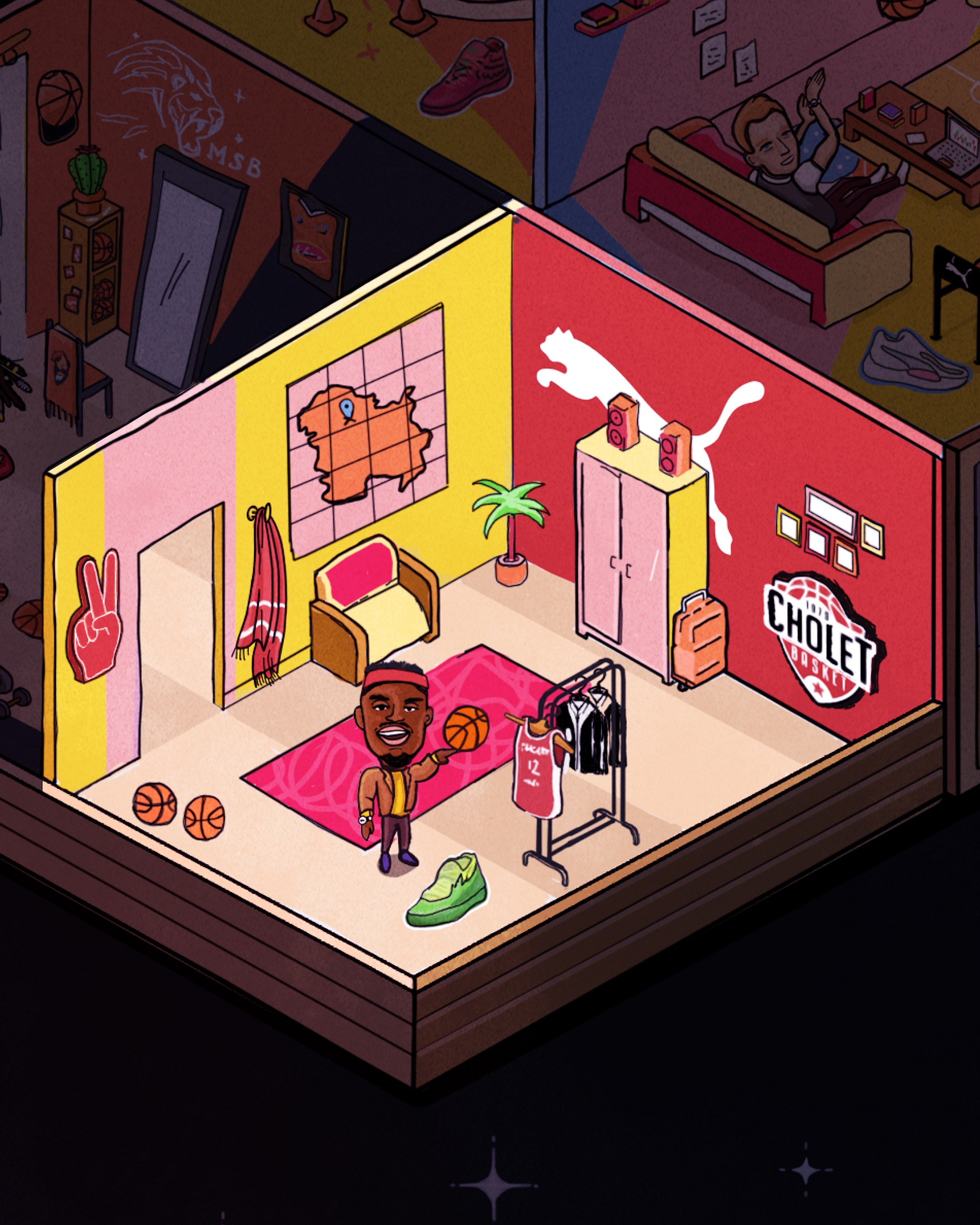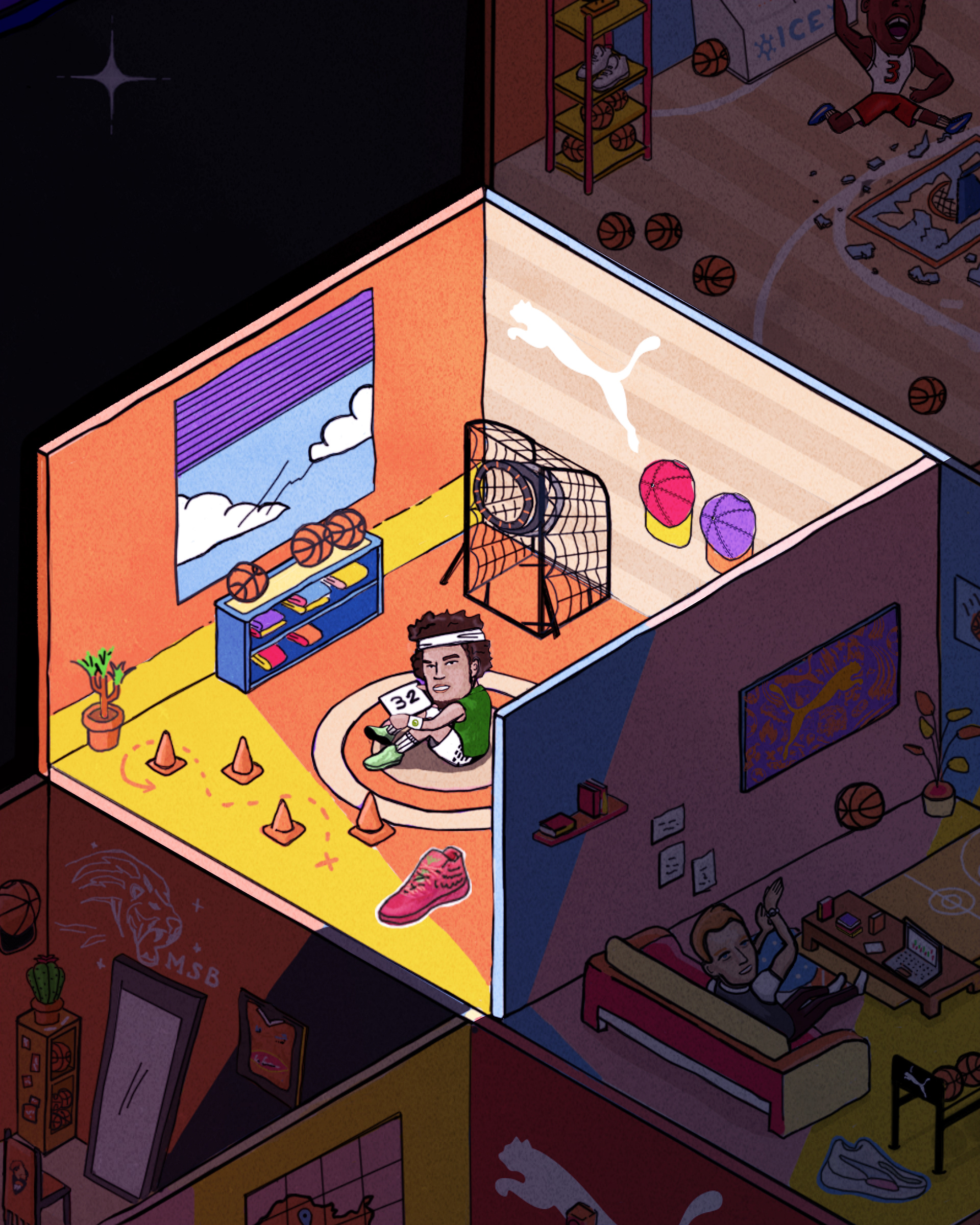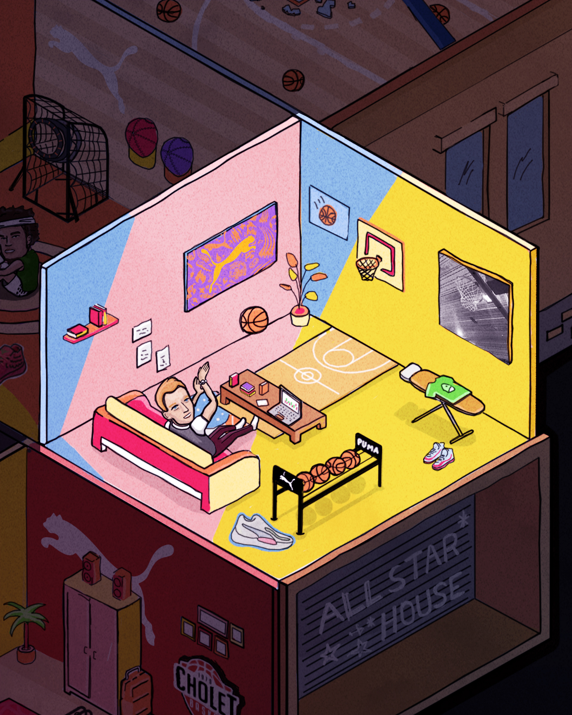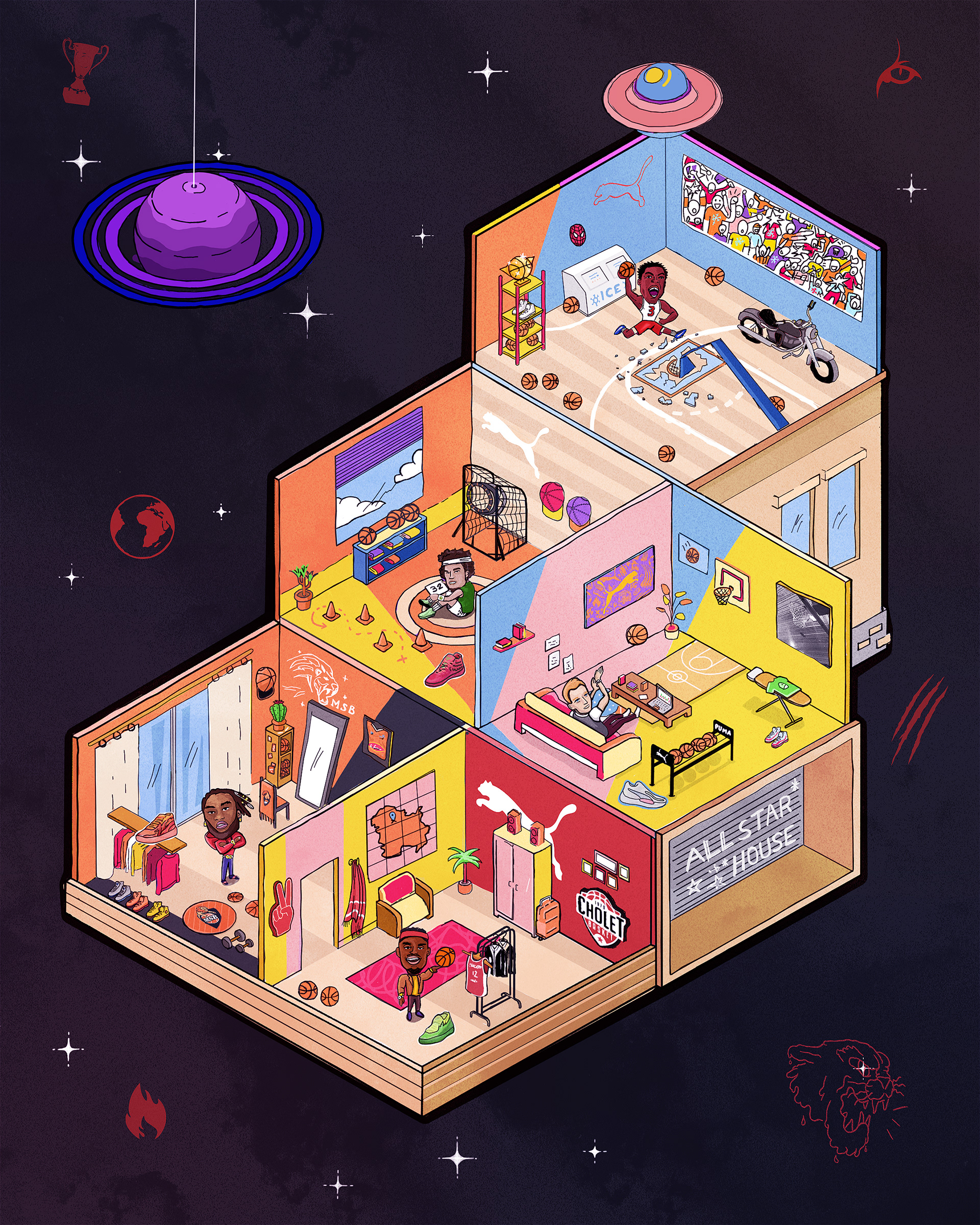 Illustration mêlant plusieurs joueurs de Basket, réunis au sein de la Puma House.